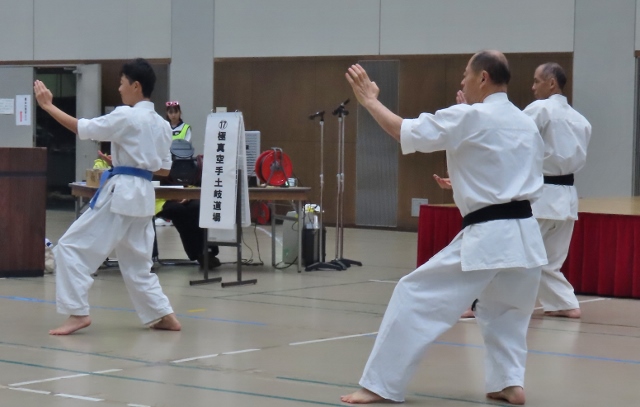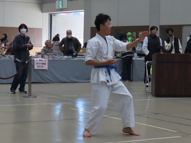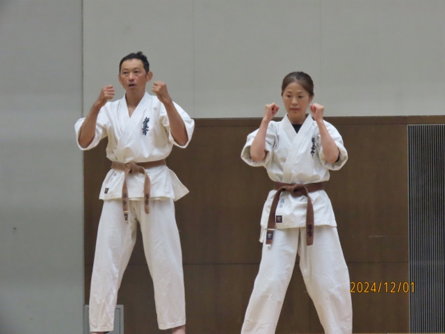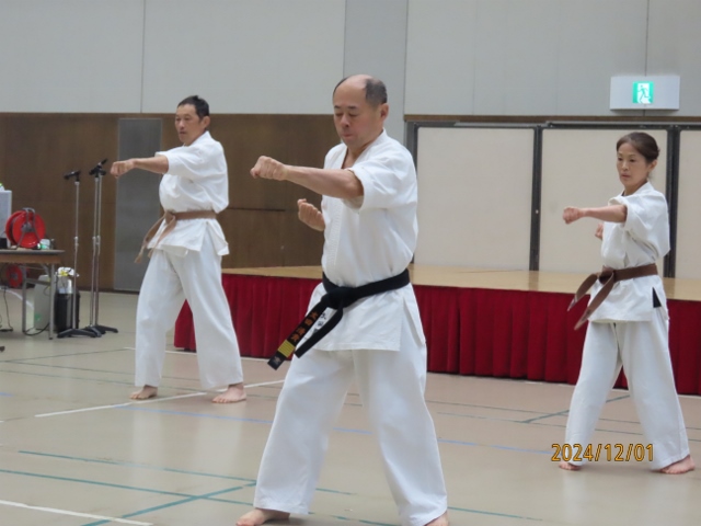 12/1 土岐道場演武基本・型・板割・バット、、昨年よりも観衆が多かったです。